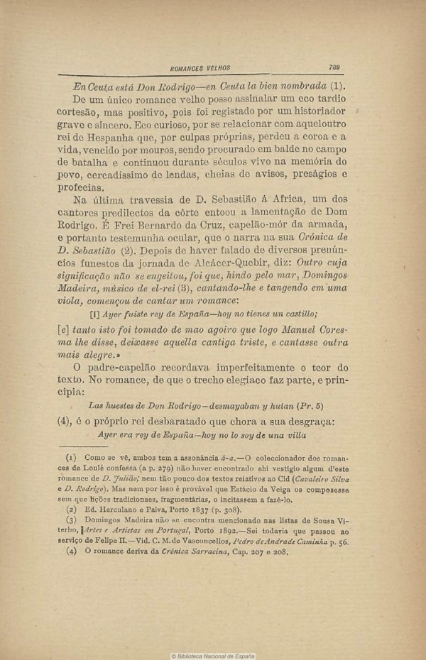 Sylva de varios romances. Agora de nvevo recopilados los mejores Romances de los tres libros de la Sylva, y añadidos los de la Liga. En esta vltima impression van añadidos, el de la muerte del Rey D. Felipe II. y el despedimento, y embarcacion de la infanta Doña Isabel de la Paz, Archiduquesa de Austria, y los quatro de D. Alvaro de Luna. Y tres Romances de la enfermedad, y muerte del Rey Don Felipe II. [sic] Con licencia. En Barcelona, por Josef Casarachs delante la Rectoria del Pino año 1696, fol. 106r (o texto corresponde ao das edições de 1675).